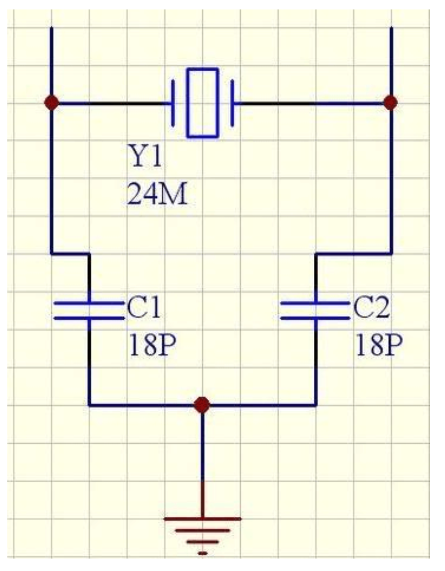 圖中C1,C2這兩個(gè)電容就叫晶振的負(fù)載電容,分別接在晶振的兩個(gè)腳上和對(duì)地的電容,一般在幾十皮法。它會(huì)影響到晶振的諧振頻率和輸出幅度,一般訂購(gòu)晶振時(shí)候供貨方會(huì)問(wèn)你負(fù)載電容是多少。晶振的負(fù)載電容=[(Cd*Cg)/(Cd+Cg)]+Cic+△C式中Cd,Cg為分別接在晶振的兩個(gè)腳上和對(duì)地的電容,Cic(集成電路內(nèi)部電容)+△C(PCB上電容)經(jīng)驗(yàn)值為3至5pf。因此,晶振的數(shù)據(jù)表中規(guī)定12pf的有效負(fù)載電容要求在每個(gè)引腳XIN與XOUT上具有22pf(2*12pf=24pf=22pf2pf寄生電容,定值貼片電容沒(méi)有24pf,據(jù)表中規(guī)定12pf的有效負(fù)載電容要求在每個(gè)引腳XIN與XOUT上具有22pf(2*12pf=24pf=22pf2pf寄生電容,定值貼片電容沒(méi)有24pf。 只有22pf)。兩邊電容為Cg,Cd,負(fù)載電容為CI, cl=cg*cd/(cg+cd)+a,a=Cic+△C(a的經(jīng)驗(yàn)值是3.5-13.5pf)就是說(shuō)負(fù)載電容15pf的話(huà),兩邊兩個(gè)接27pf(定值貼片電容只有27pf,沒(méi)有30pf)的差不多了。